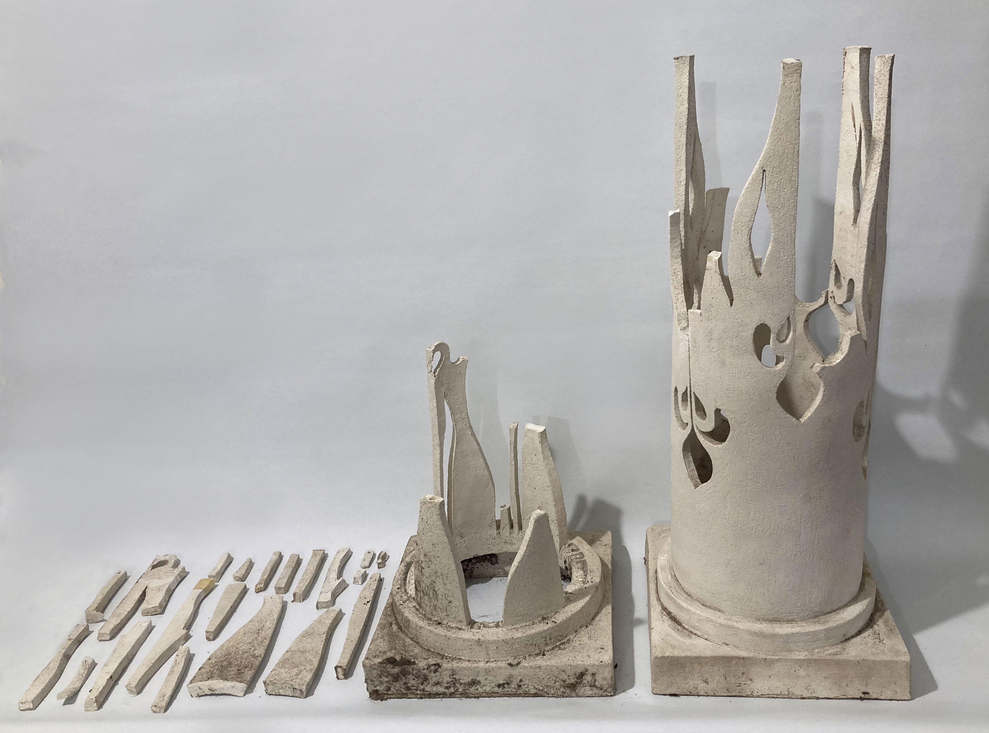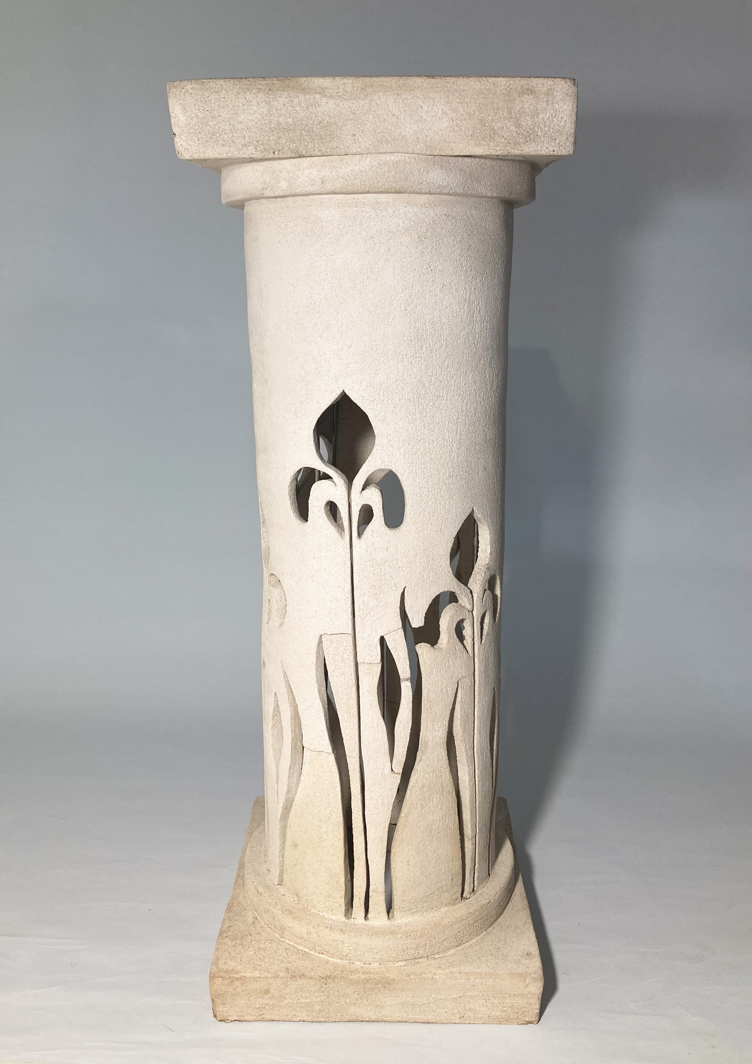 Treatment of a modern ceramic garden stand which experienced physical deterioration due to being placed outside in the winter. The fragments were cleaned with water and a non-ionic surfactant. then small areas and break-lines were filled and retouched. It is now back in its rightful place in the garden.